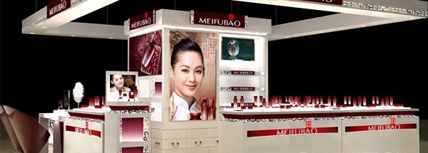 化妝品展柜設計案例分析–美膚寶之漢方經典:整體形象以簡約中式古典風格為主… …